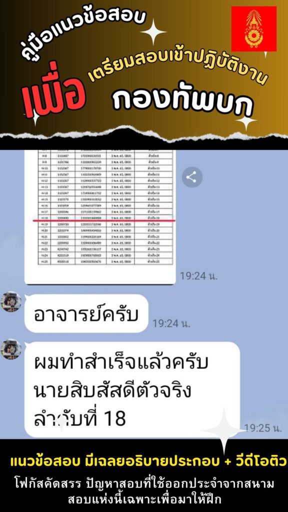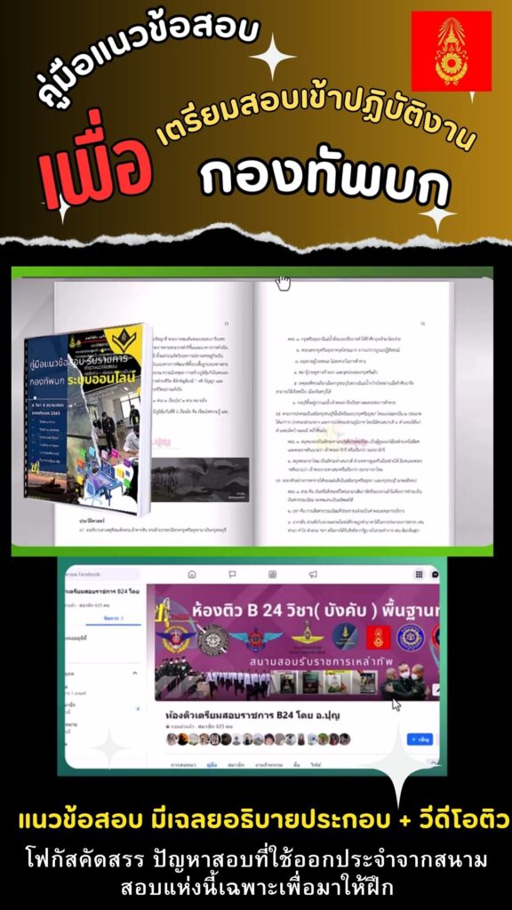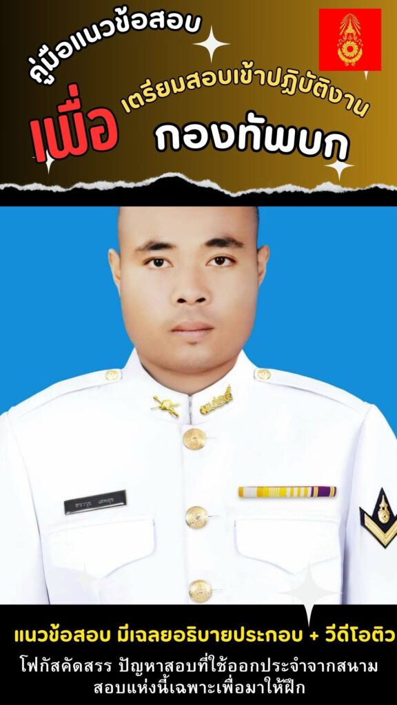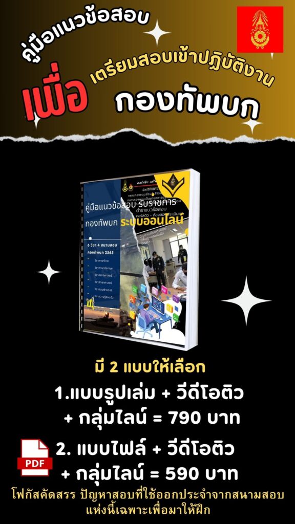 คู่มือแนวข้อสอบ พร้อมวีดีโอติว เตรียมสอบเข้ารับราชการกองทัพบกสนามสอบนี้จะเปิดเริ่มเปิดรับสมัครช่วงปลายปี และเริ่มสอบช่วงต้นปี ของทุกๆปี มาโดยตลอด